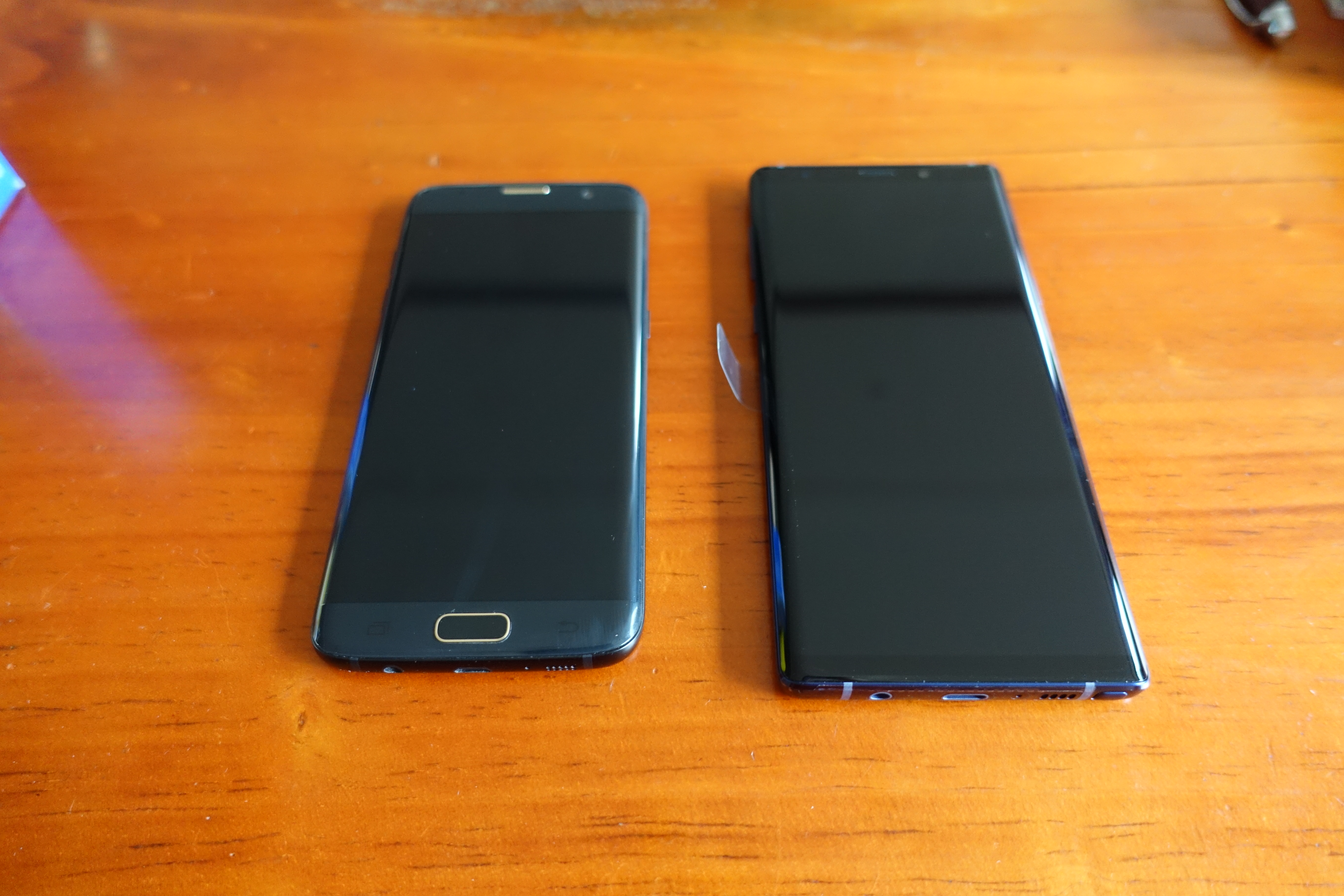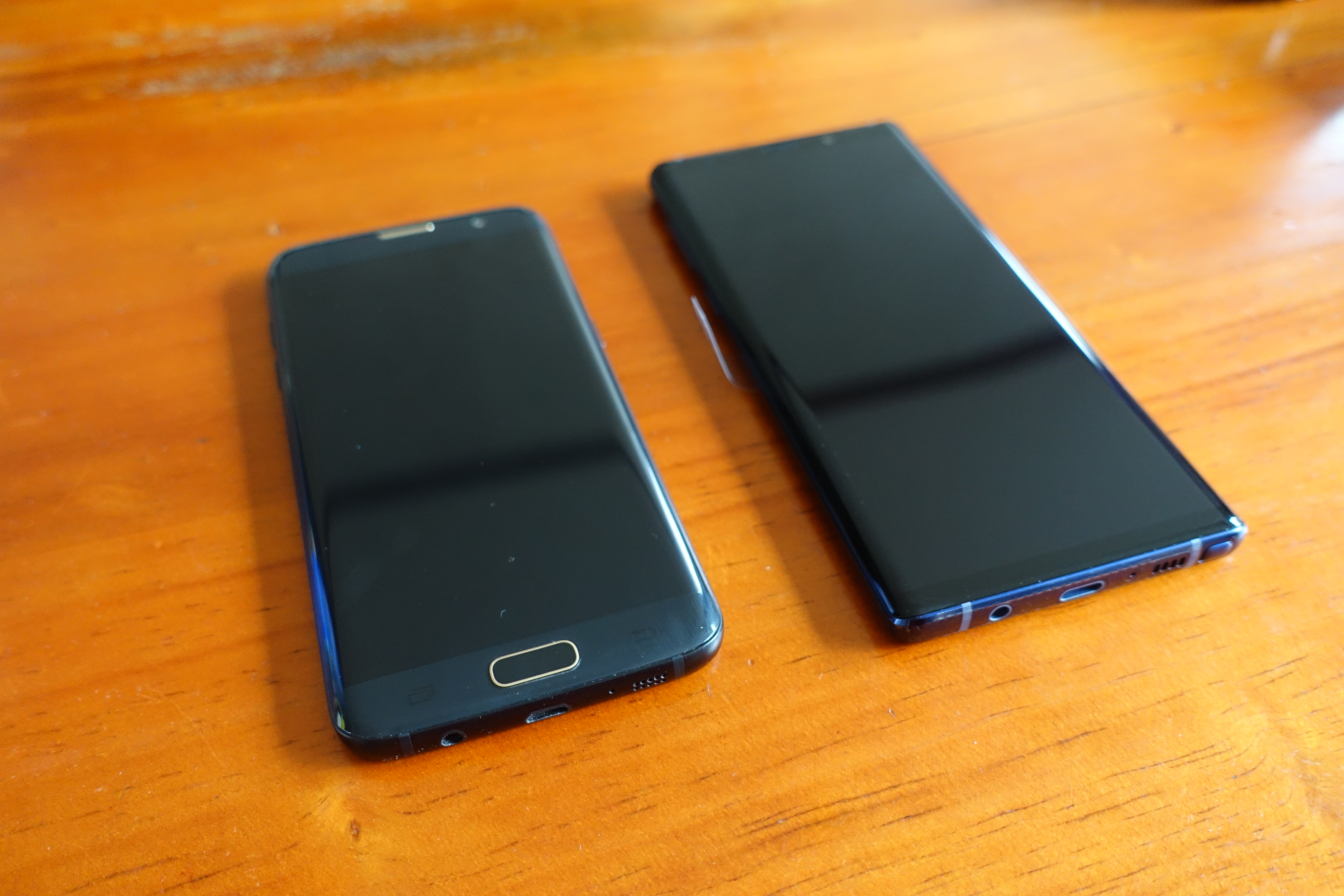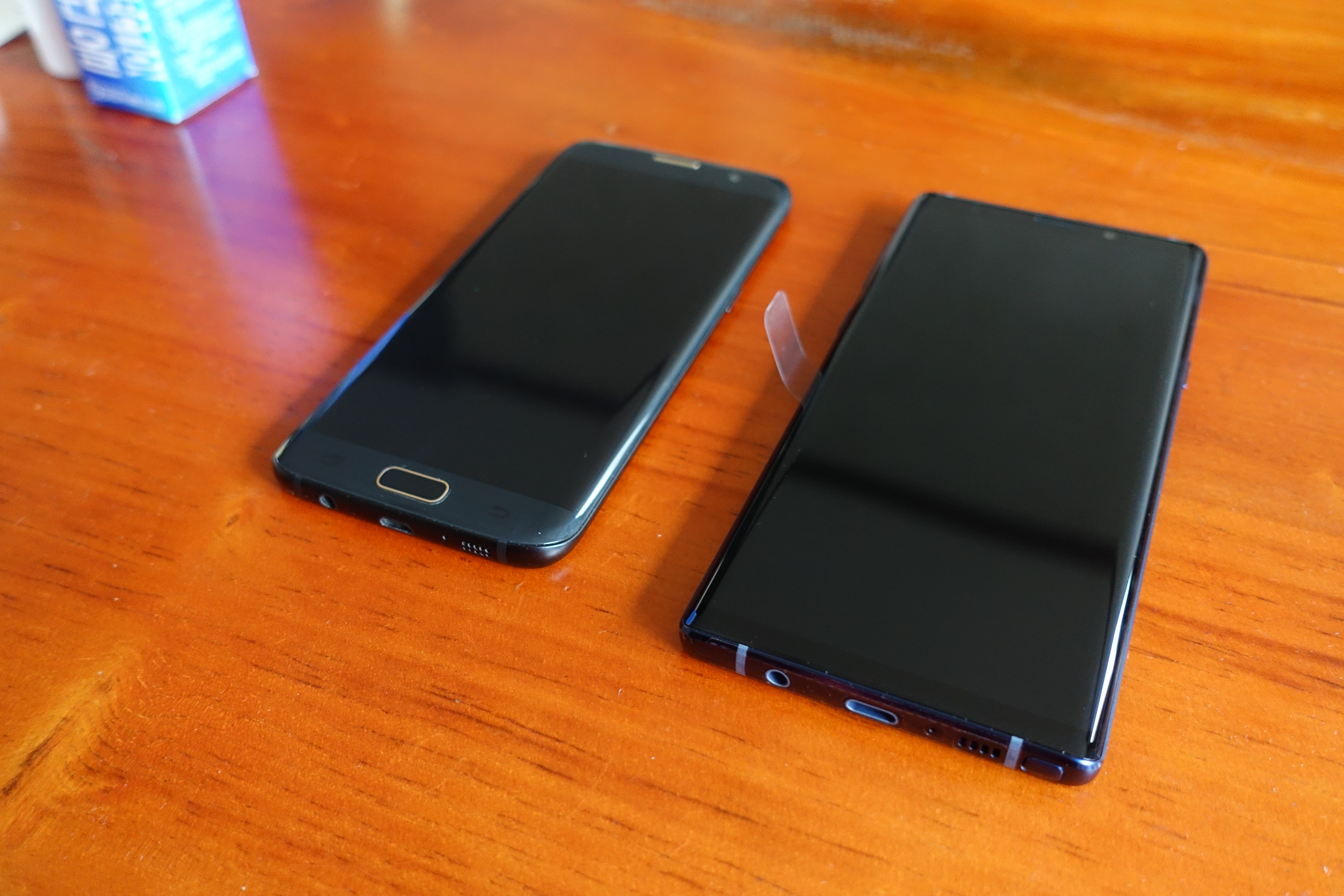 이전에 쓰던 기종인 갤럭시S7 배트맨에디션. 넣어놓기전에 비교샷을 찍어보았다. 기존의 둥글둥글한 이미지에서 각집힌 노트만의 디자인으로 변모했고 카메라부도 조금 더 복잡해졌다.