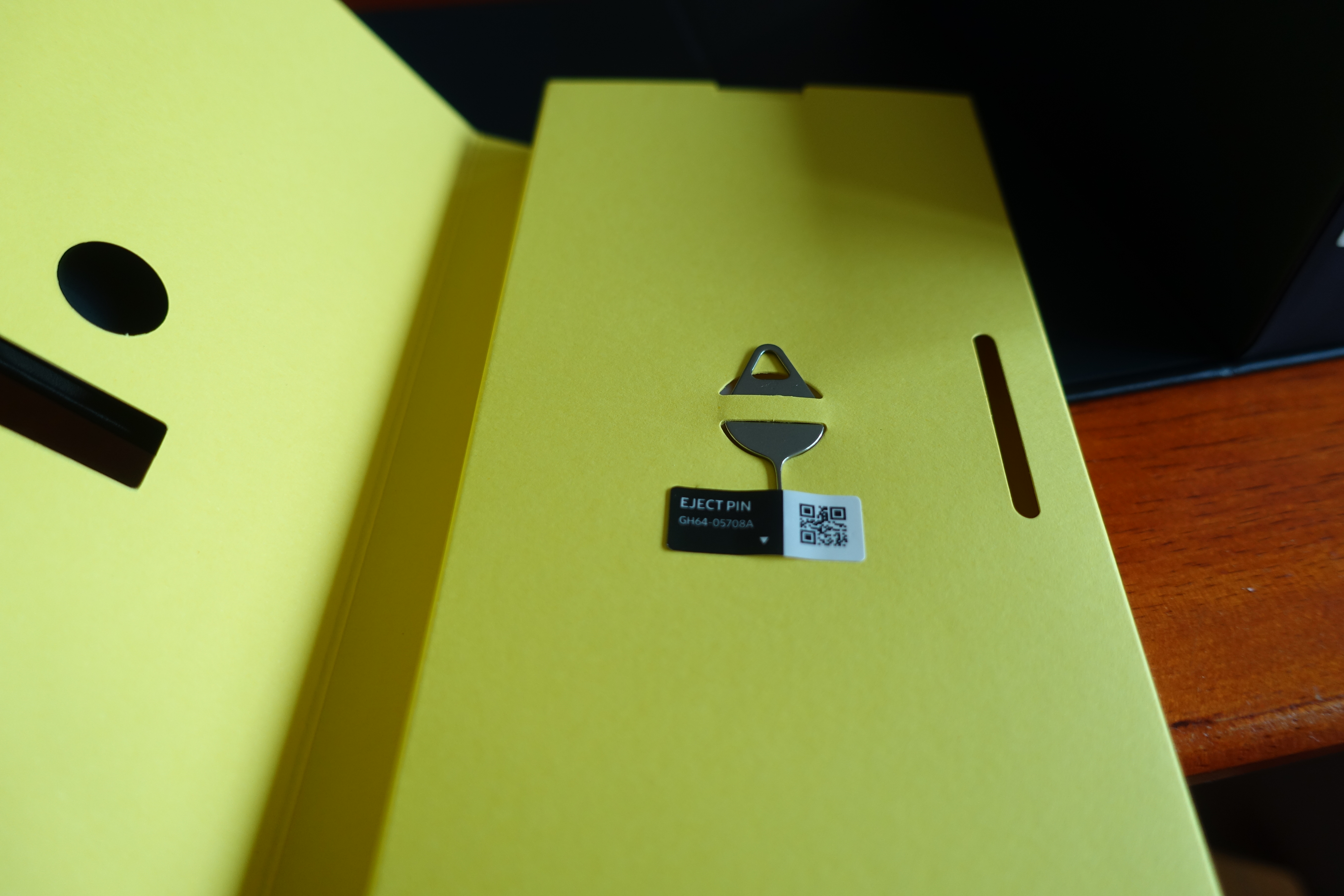 노트를 받치고 있던 칸 안에는 실리콘 케이스와 설명서, USIM 핀이 들어있다.